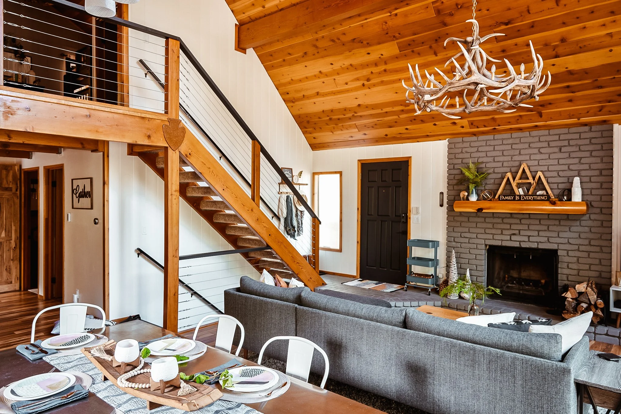 This short-term rental wanted to stand out in Lake Arrowhead, CA’s high-density vacation rental market. It needed to convey a high-end brand experience that still feels comfortable & accessible. (I own this cabin & styled it myself. )